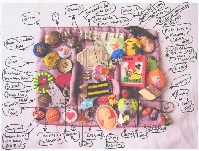 wie herrlich ist das! zu jeder brosche eine kleine erinnerung. und auch sonst ein empfehlenswerter blog zum reinklicken: SUGARPOLLUTION by Jennifer.